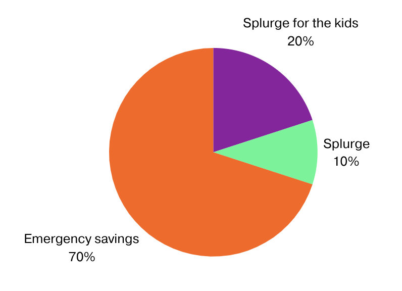 The 10% splurge budget is an act of self-love. You’re allowing yourself to be human and forgiving yourself for any past money mistakes. Why not teach the kids an early lesson in self-love, too? This plan makes room for treating yourself and the kids to fun gifts and activities, while still prioritizing emergency savings.